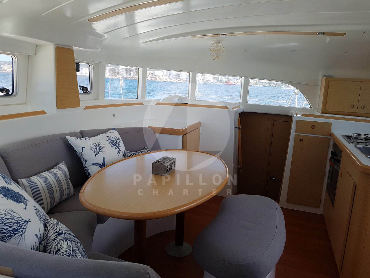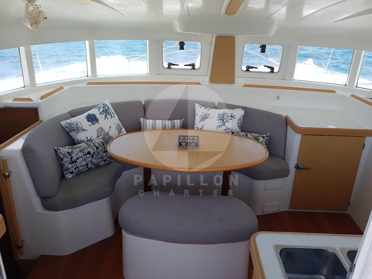 Nuestro catamaran Lagoon 380 S2, con capacidad para 12 personas incluyendo patrón, cuenta con 4 cabinas doble, dos baños, dos cabinas de proa habilitadas para el patrón.